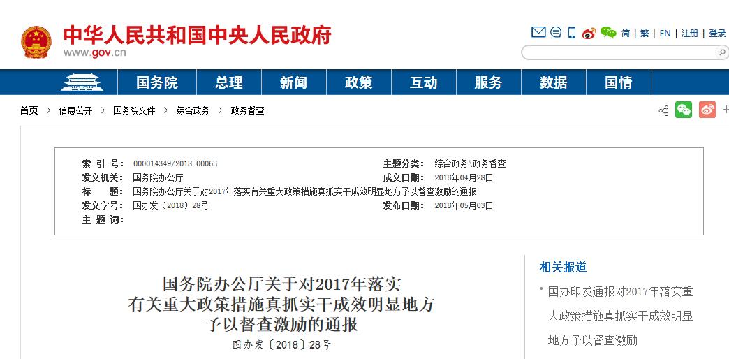 2018年對上述市、縣(市、區(qū))、功能區(qū)在國務院大督查實地督查中予以“免督查”。(國務院辦公廳組織實施)