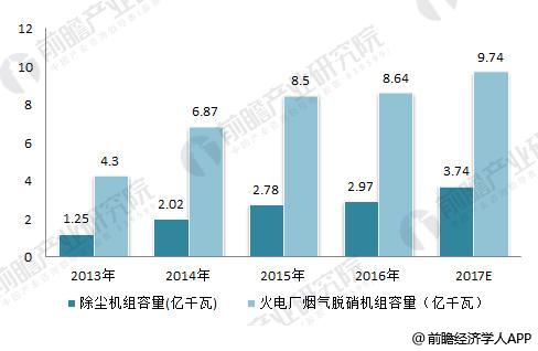 圖表5:2013-2017年我國火電脫硝及除塵裝機容量(單位:億千瓦)
