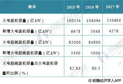 圖表2:2015-2017年火電裝機容量和實施煙氣脫硫的機組容量統(tǒng)計(單位:億千瓦,%)