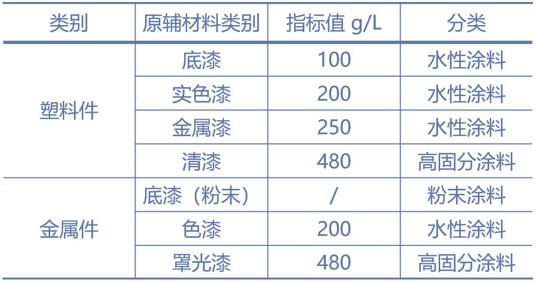 表1:汽車零部件制造業(yè)涂料VOCs含量指標值