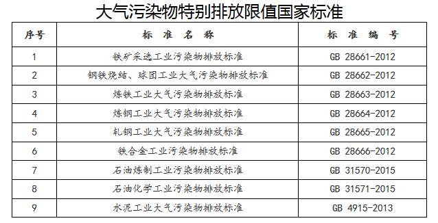 自2019年1月1日起,鋼鐵、水泥行業(yè)現(xiàn)有企業(yè)執(zhí)行顆粒物、二氧化硫和氮氧化物特別排放限值;自2019年6月1日起,石化行業(yè)現(xiàn)有企業(yè)執(zhí)行顆粒物、二氧化硫、氮氧化物和揮發(fā)性有機(jī)物特別排放限值。其中,珠三角地區(qū)按照《關(guān)于執(zhí)行大氣污染物特別排放限值的公告》(環(huán)境保護(hù)部公告2013年第14號)規(guī)定執(zhí)行新建項目要求的,繼續(xù)按原公告執(zhí)行。