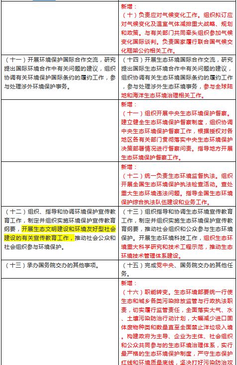 1.新增“中央生態(tài)環(huán)境保護督查”的職能,將中央生態(tài)環(huán)境保護督查作為一項常規(guī)性的督查制度予以確立。