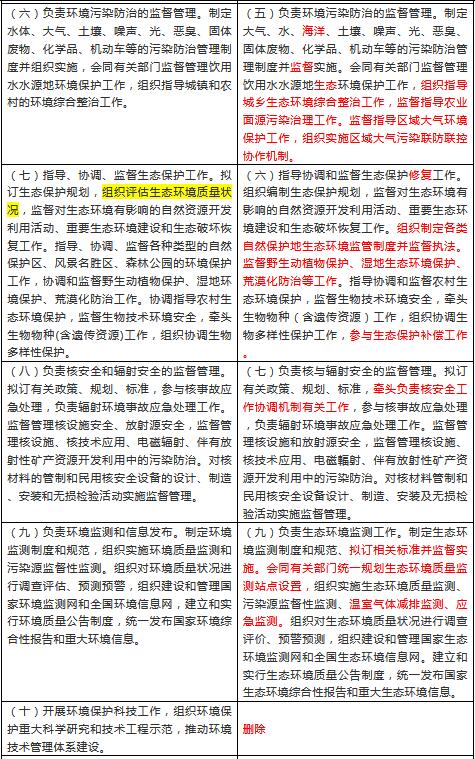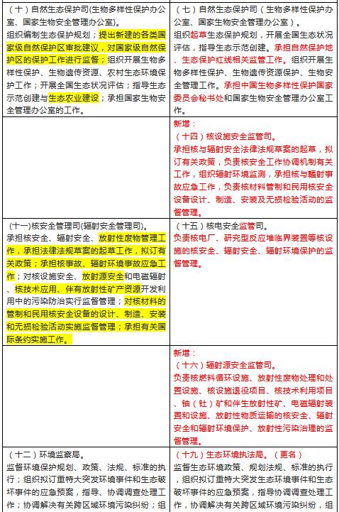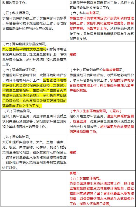 7.環(huán)境影響評價司變更為“環(huán)境影響評價與排放管理司”,新增排污許可制度的管理職能。