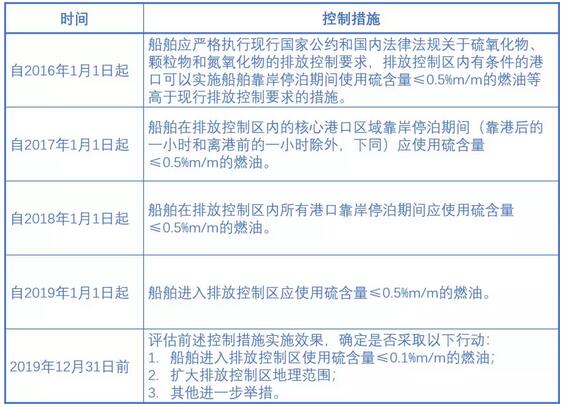 文件主要分時段加強船舶硫含量控制的要求,同時船舶也可采取連接岸電、使用清潔能源、尾氣后處理等與上述排放控制要求等效的替代措施。