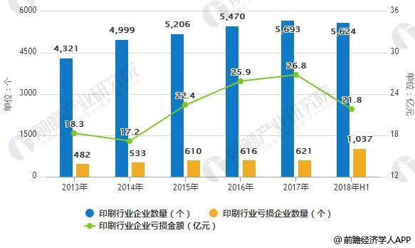 2018年是實施“十三五”規(guī)劃承上啟下的關(guān)鍵一年,印刷行業(yè)保持穩(wěn)定增長。截至2018年上半年,印刷行業(yè)企業(yè)共計5624個。其中,虧損企業(yè)達1037個,虧損總額為21.8億元。