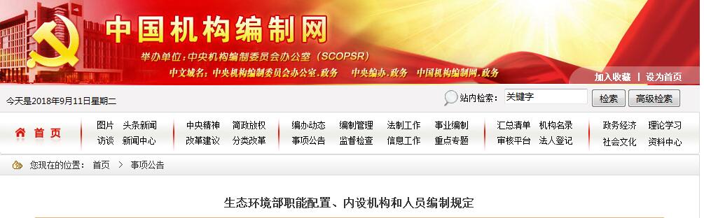 生態(tài)環(huán)境部職能配置、內(nèi)設(shè)機(jī)構(gòu)和人員編制規(guī)定