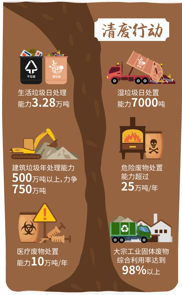 “清廢行動(dòng)”聚焦各類固體廢物全過程管理,全面排查整治各類垃圾的非法傾倒和歷史堆點(diǎn),加快各類固廢利用處置設(shè)施建設(shè)完善,確保各類固廢利用處置能力全面提升。