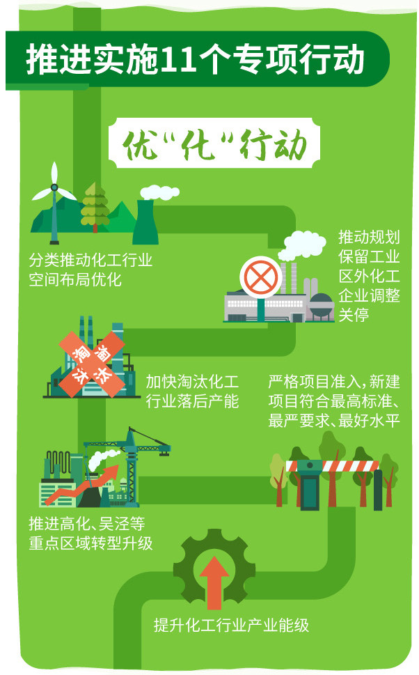 “優(yōu)‘化’行動(dòng)”聚焦化工行業(yè)優(yōu)化提升,通過嚴(yán)格項(xiàng)目準(zhǔn)入、嚴(yán)格執(zhí)法監(jiān)管、實(shí)施清潔生產(chǎn)、推進(jìn)治理升級(jí)等多種手段,加快淘汰化工行業(yè)落后產(chǎn)能,抓緊推動(dòng)化工企業(yè)搬遷入園,持續(xù)優(yōu)化化工行業(yè)空間布局,不斷提升專業(yè)園區(qū)產(chǎn)業(yè)能級(jí)。
