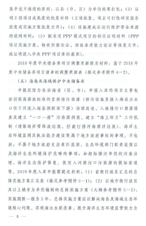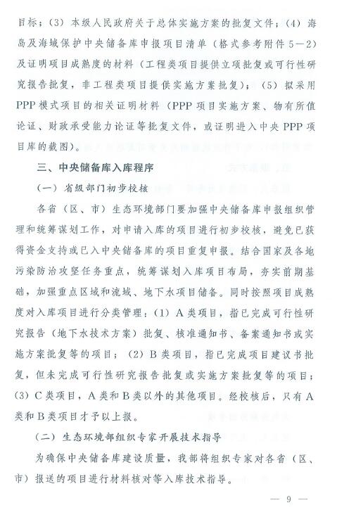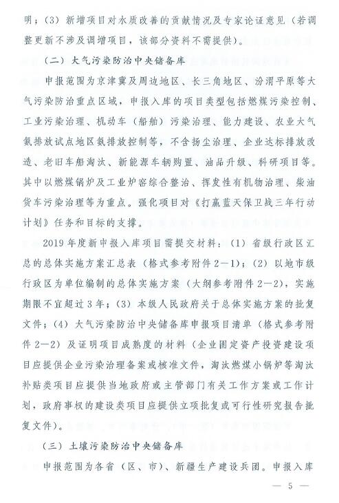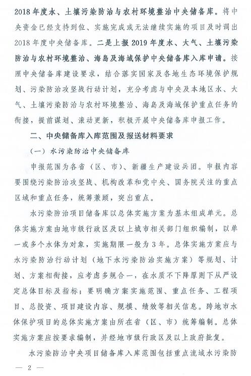 生態(tài)環(huán)境部辦公廳印發(fā)關(guān)于開展2019年度中央環(huán)保投資項(xiàng)目儲備庫建設(shè)的通知。中央儲備庫涉及大氣污染防治、水污染防治、土壤污染防治、農(nóng)村環(huán)境整治、海島及海域保護(hù)等五項(xiàng)。全文如下: