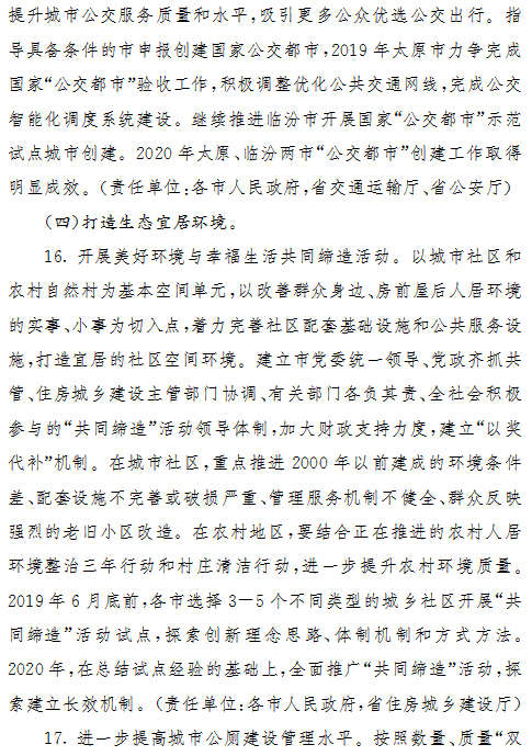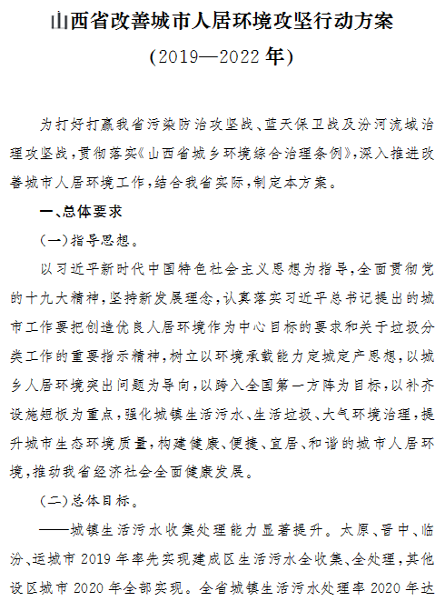 山西省改善城市人居環(huán)境攻堅行動方案(2019—2022年)