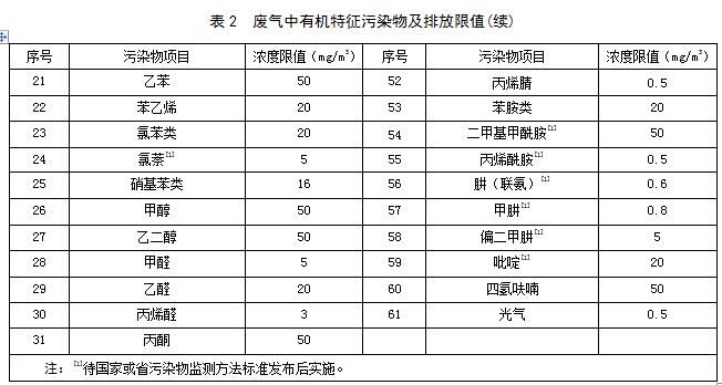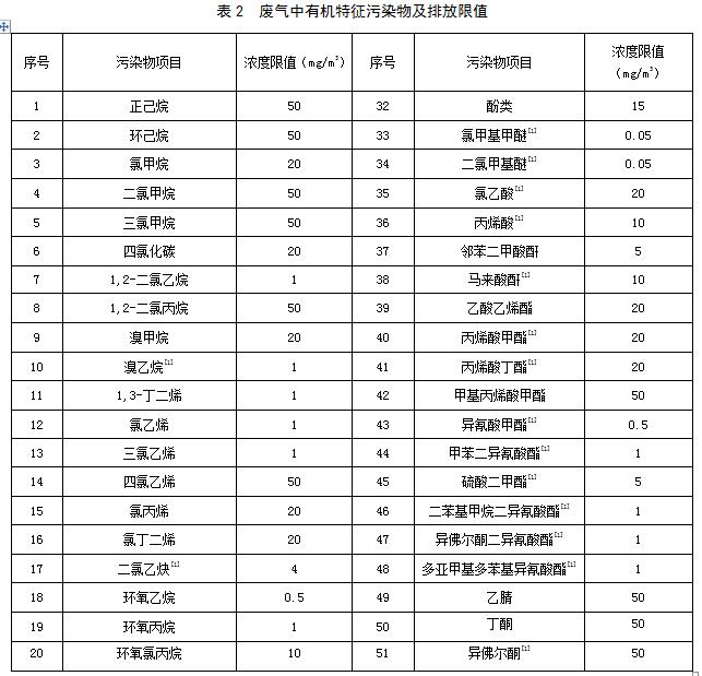4.1.2 企業(yè)應(yīng)根據(jù)使用的原料,生產(chǎn)工藝過程,生產(chǎn)的產(chǎn)品、副產(chǎn)品,從表2中篩選并上報(bào)需要控制的廢氣中有機(jī)特征污染物的種類及排放濃度限值,經(jīng)相關(guān)主管部門確認(rèn)執(zhí)行。