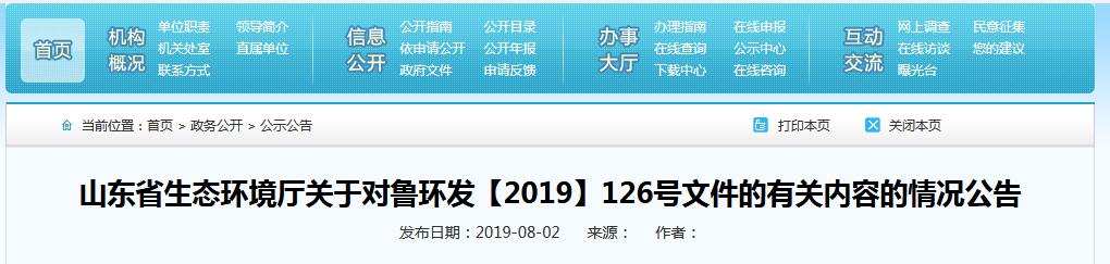 日前,山東發(fā)布山東省生態(tài)環(huán)境廳關(guān)于對(duì)魯環(huán)發(fā)【2019】126號(hào)文件的有關(guān)內(nèi)容的情況公告。詳情如下: