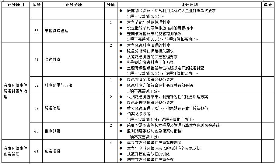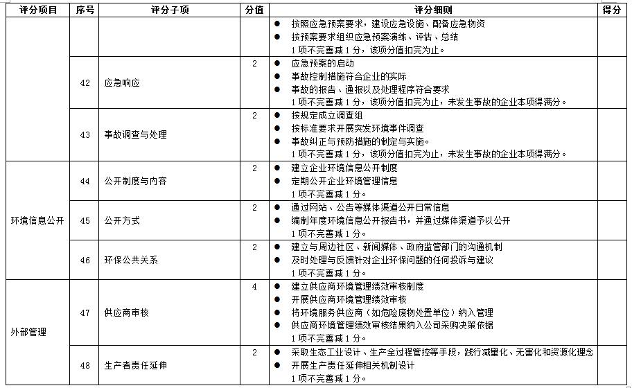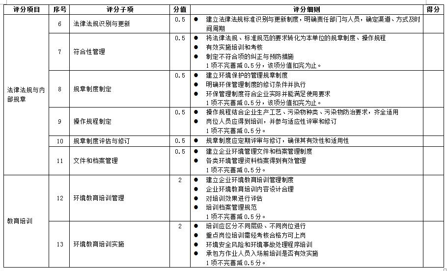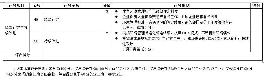 企業(yè)應(yīng)建立環(huán)境管理標(biāo)準(zhǔn)化績效評定制度,每年至少進行一次自評,驗證各項環(huán)境管理要求的適宜性、充分性和有效性,發(fā)現(xiàn)問題,提出糾正和預(yù)防措施,并納入下一周期的環(huán)境管理提升計劃中。