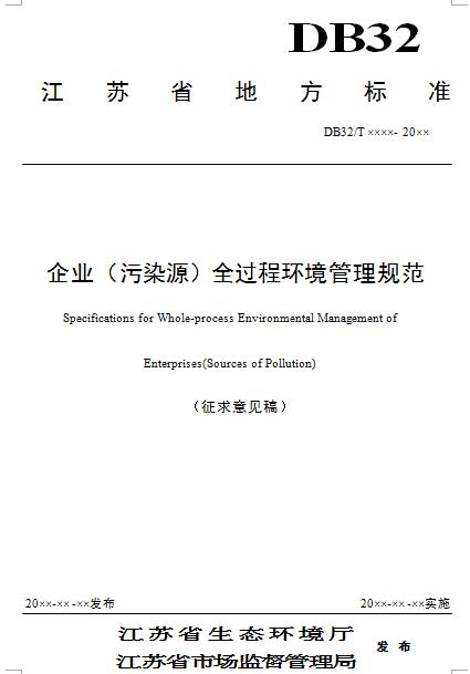 日前,江蘇印發(fā)《企業(yè)(污染源)全過程環(huán)境管理規(guī)范(征求意見稿)》。詳情如下: