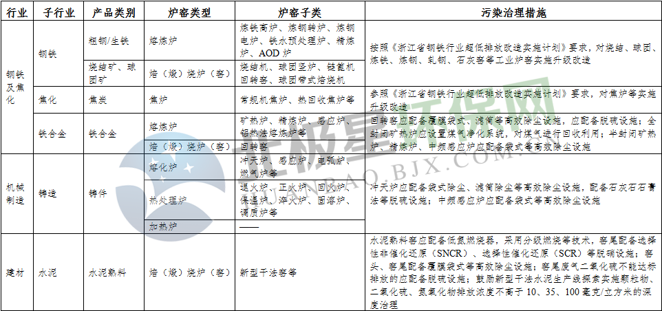 重點行業(yè)工業(yè)爐窯大氣污染治理要求