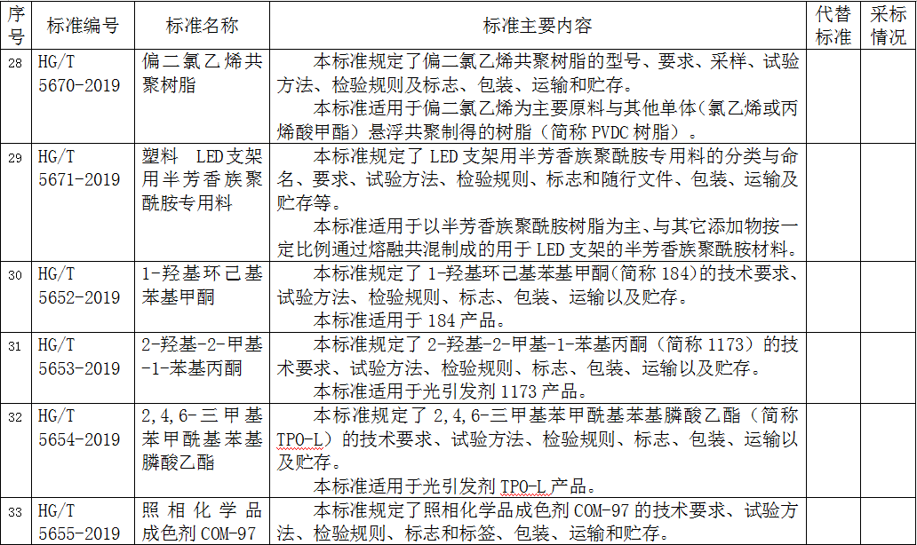 根據(jù)行業(yè)標準制修訂計劃,相關標準化技術組織已完成《阻燃化學品 聚磷酸三聚氰胺》等150項化工行業(yè)標準、《工業(yè)用碳九芳烴》等5項石化行業(yè)標準、《真空自耗爐結晶器》等5項冶金行業(yè)標準、《高性能紅外探測器用熱釋電單晶》等22項建材行業(yè)標準、《智能熱水循環(huán)屏蔽電泵》等39項機械行業(yè)標準、《多旋翼無人機系統(tǒng)通用要求》等2項航空行業(yè)標準的制修訂工作。在以上標準批準發(fā)布之前,為進一步聽取社會各界意見,現(xiàn)予以公示,截止日期2019年11月12日。