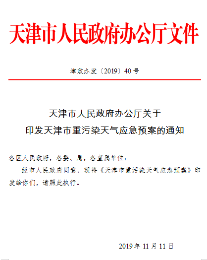 天津發(fā)布關于印發(fā)《天津市重污染天氣應急預案的通知》,詳情如下: