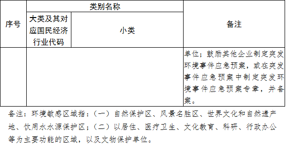 四川省突發(fā)環(huán)境事件應急預案備案行業(yè)名錄(試行)