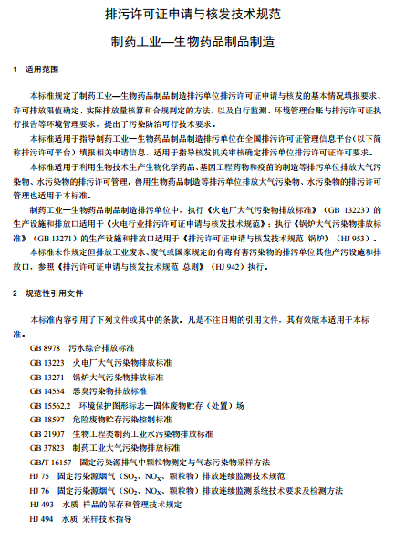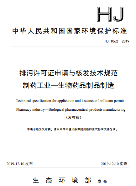 一、《排污許可證申請與核發(fā)技術規(guī)范 制藥工業(yè)—生物藥品制品制造》(HJ1062-2019)