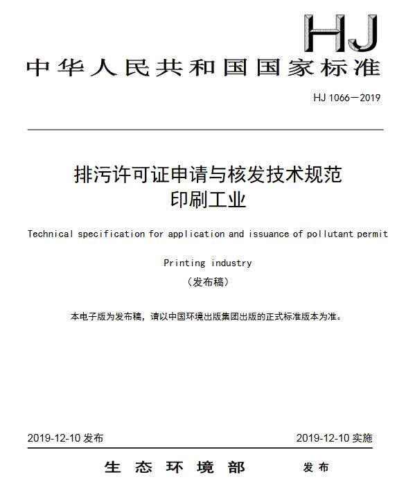 生態(tài)環(huán)境部發(fā)布《排污許可證申請(qǐng)與核發(fā)技術(shù)規(guī)范 印刷工業(yè)(HJ 1066-2019)》。全文如下: