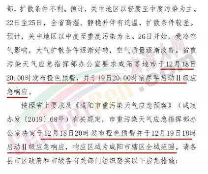 渭南市啟動重污染天氣Ⅱ級應(yīng)急響應(yīng)通告