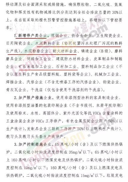 石材加工、非金屬礦物制品業(yè)、非煤礦山開采、木材加工和木、竹、藤、草制品加工、橡塑制品加工等行業(yè)停產(chǎn)。