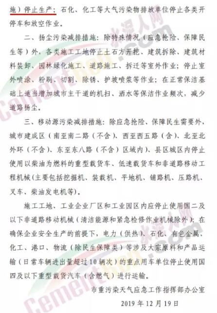 6.工信部門督導(dǎo)水泥制品、粉磨站停止生產(chǎn)、水泥熟料生產(chǎn)線(特種水泥除外)。