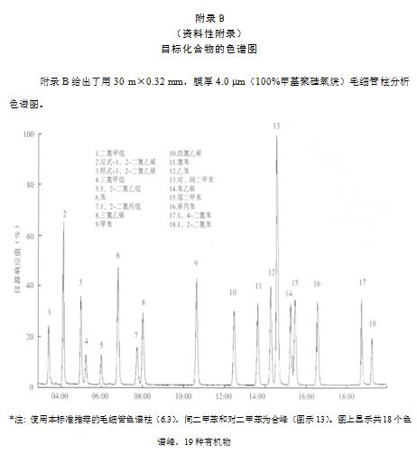 注:使用本標(biāo)準(zhǔn)推薦的毛細(xì)管色譜柱(6.3),間二甲苯和對二甲苯為合峰,它們的含量為兩者之和。