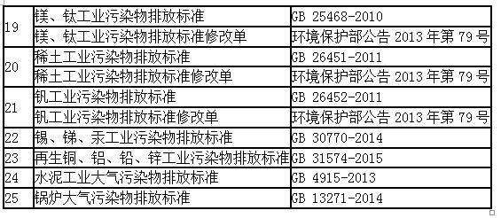已規(guī)定大氣污染物特別排放限值的國(guó)家排放標(biāo)準(zhǔn)