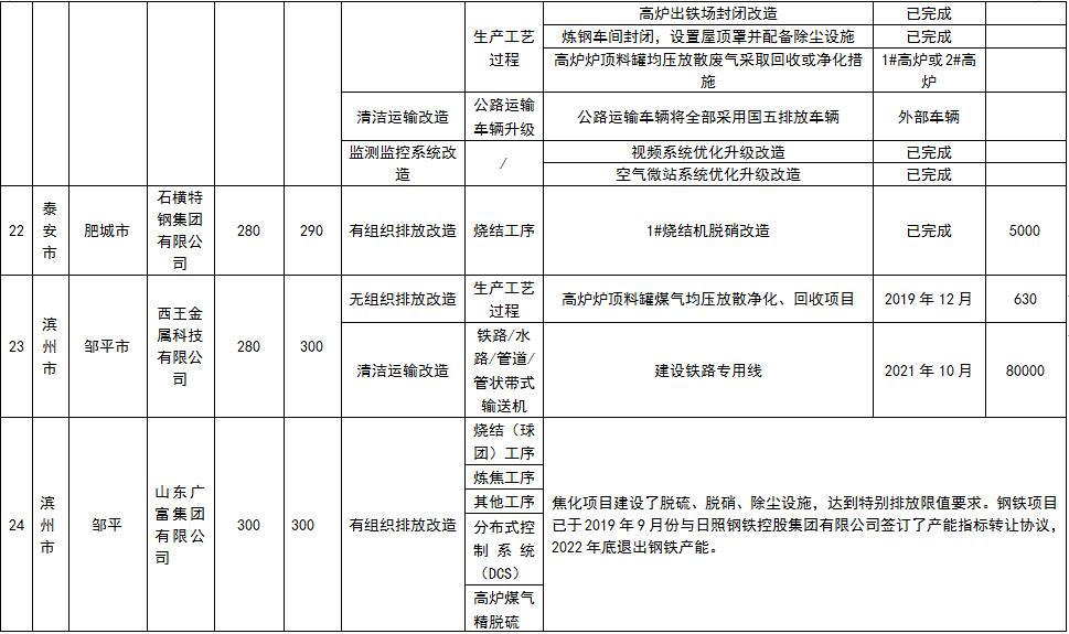 山東省鋼鐵行業(yè)超低排放改造實施方案