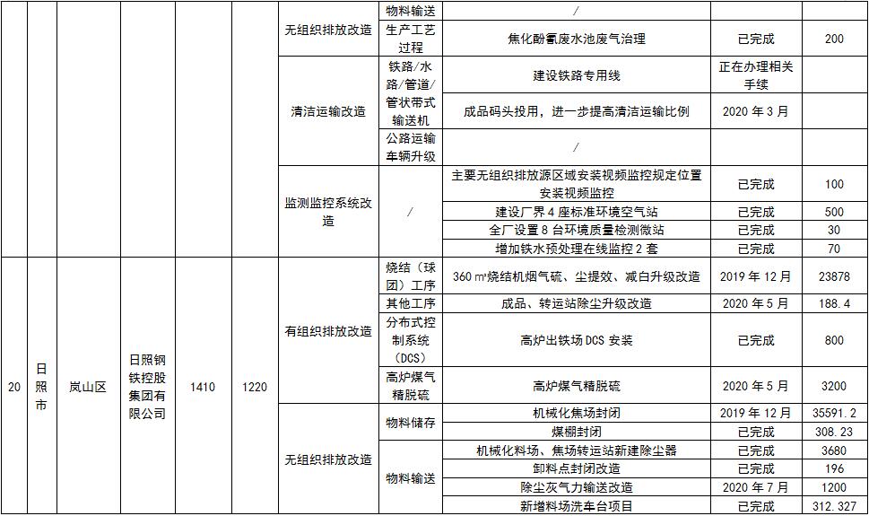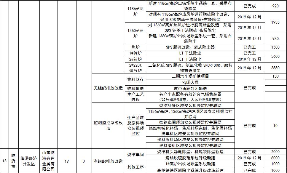 全省鋼鐵企業(yè)超低排放改造計劃管理臺賬