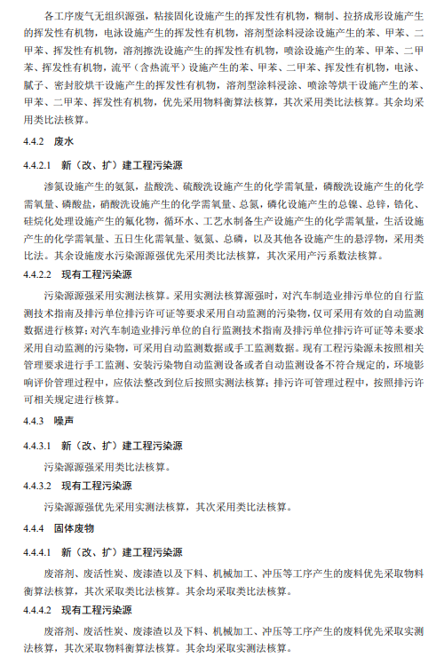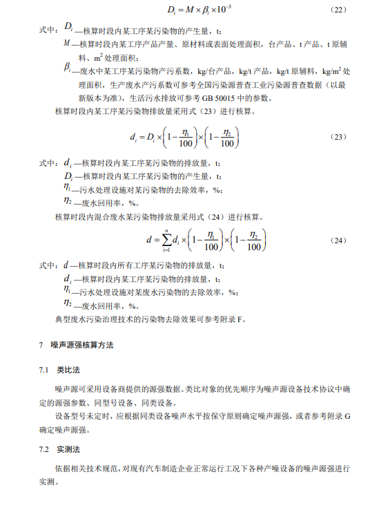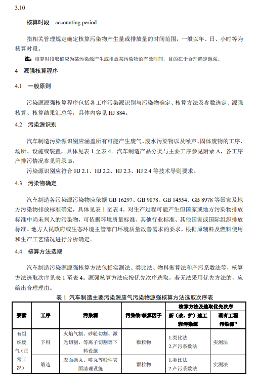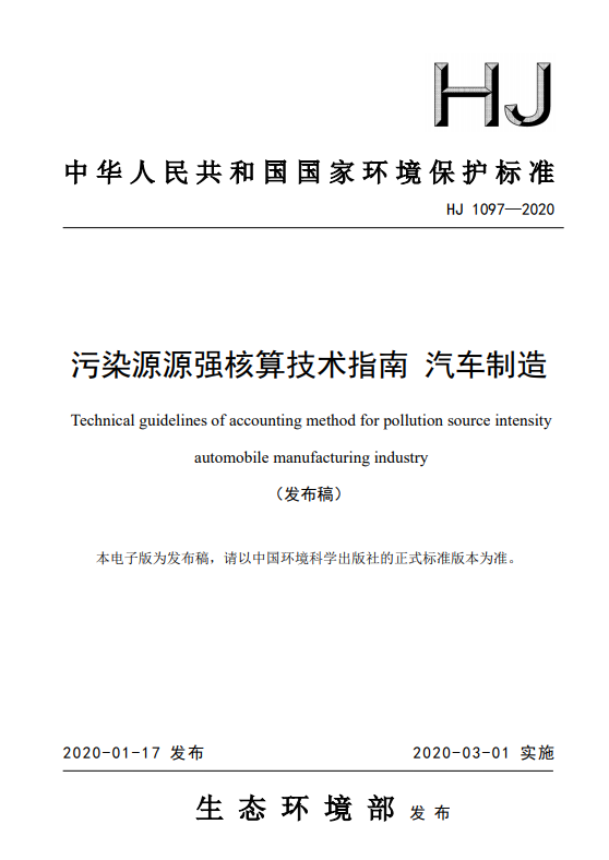 為貫徹《中華人民共和國環(huán)境保護(hù)法》《中華人民共和國環(huán)境影響評(píng)價(jià)法》《中華人民共和國大氣污染防治法》《中華人民共和國水污染防治法》《中華人民共和國環(huán)境噪聲污染防治法》《中華人民共和國固體廢物污染環(huán)境防治法》《中華人民共和國土壤污染防治法》等法律法規(guī),完善固定污染源源強(qiáng)核算方法體系,指導(dǎo)和規(guī)范汽車制造污染源源強(qiáng)核算工作,制定本標(biāo)準(zhǔn)。本標(biāo)準(zhǔn)規(guī)定了汽車制造廢氣、廢水、噪聲、固體廢物污染源強(qiáng)核算的基本原則、內(nèi)容、核算方法及要求等。本標(biāo)準(zhǔn)附錄 A~附錄 H 均為資料性附錄。本標(biāo)準(zhǔn)為首次發(fā)布。