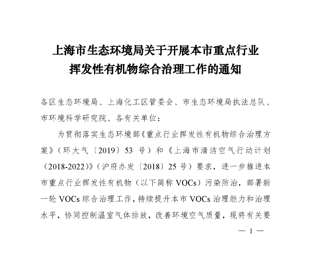 近日,《上海市生態(tài)環(huán)境局關于開展本市重點行業(yè)揮發(fā)性有機物綜合治理工作的通知》(滬環(huán)氣〔2020〕41號)發(fā)布,標志著上海市VOCs治理正式進入2.0階段。小E第一時間帶大家來了解一下通知的具體內(nèi)容。