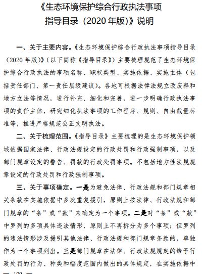 重磅!生態(tài)環(huán)境保護綜合行政執(zhí)法事項指導目錄(2020年版)