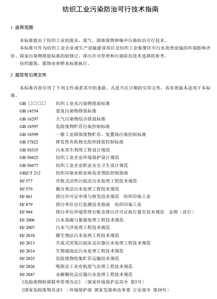 紡織工業(yè)污染防治可行技術(shù)指南(征求意見稿)