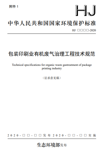 為貫徹《中華人民共和國環(huán)境保護法》和《中華人民共和國大氣污染防治法》等法律法規(guī),防治環(huán)境污染,改善環(huán)境質量,規(guī)范包裝印刷業(yè)有機廢氣治理設施的建設和運行管理,我部組織開展了《包裝印刷業(yè)有機廢氣治理工程技術規(guī)范》編制工作。根據《國家環(huán)境保護標準制修訂工作管理辦法》相關規(guī)定,現(xiàn)將已完成的標準征求意見稿印送給你們,請研提意見,并于2020年5月29日前將書面意見反饋我部科技與財務司,意見電子版反饋聯(lián)系人郵箱。標準相關資料可登錄我部網站(/)“意見征集”欄目檢索查閱。