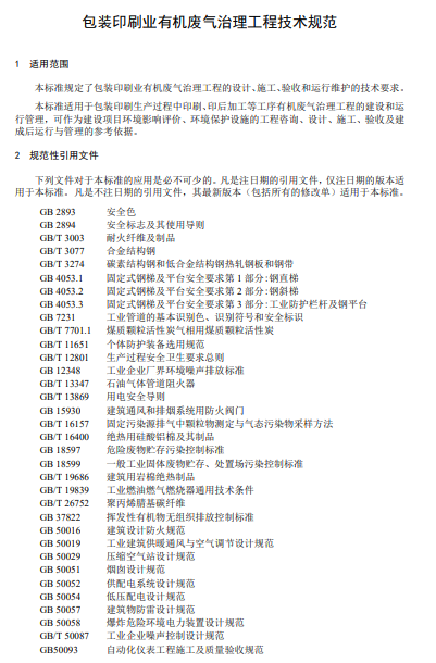 包裝印刷業(yè)有機廢氣治理工程技術規(guī)范(征求意見稿)