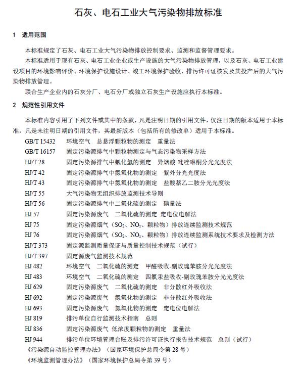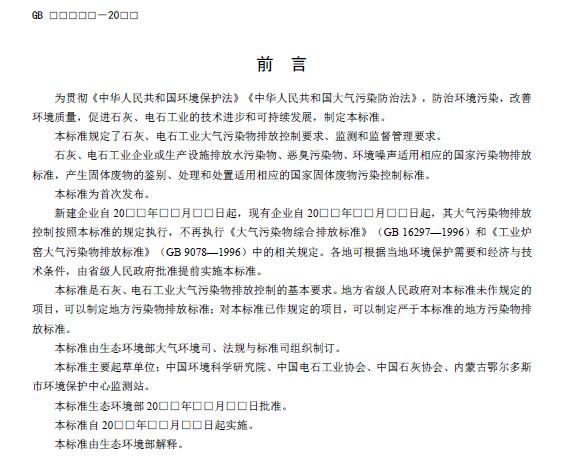 石灰、電石工業(yè)大氣污染物排放標(biāo)準(zhǔn)(征求意見(jiàn)稿)