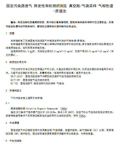 山東:固定污染源廢氣 揮發(fā)性有機物的測定 真空瓶采樣-熱脫附氣相色譜-質(zhì)譜法(征求意見稿)