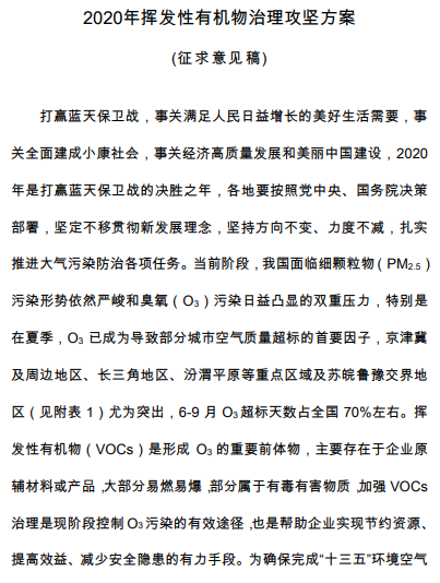 2020年揮發(fā)性有機(jī)物治理攻堅(jiān)方案(征求意見稿)