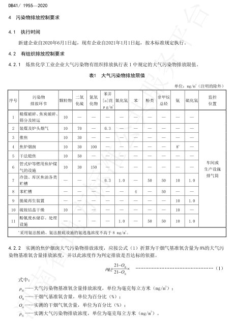 河南發(fā)布地方標(biāo)準(zhǔn)《煉焦化學(xué)工業(yè)大氣污染物排放標(biāo)準(zhǔn)》,詳情如下:
