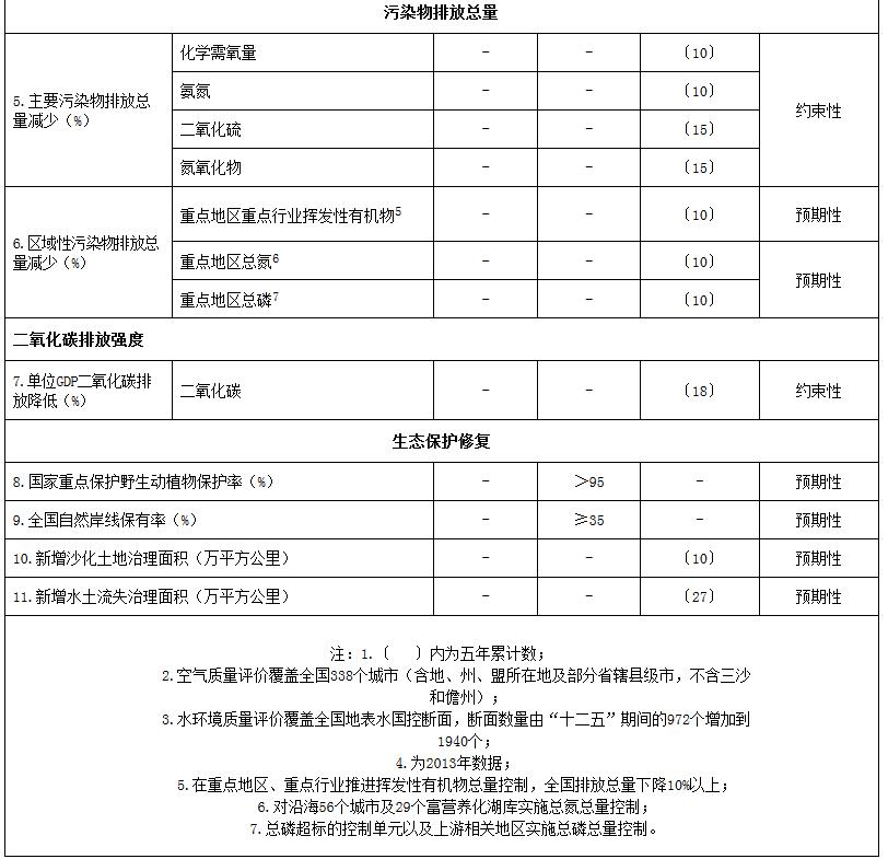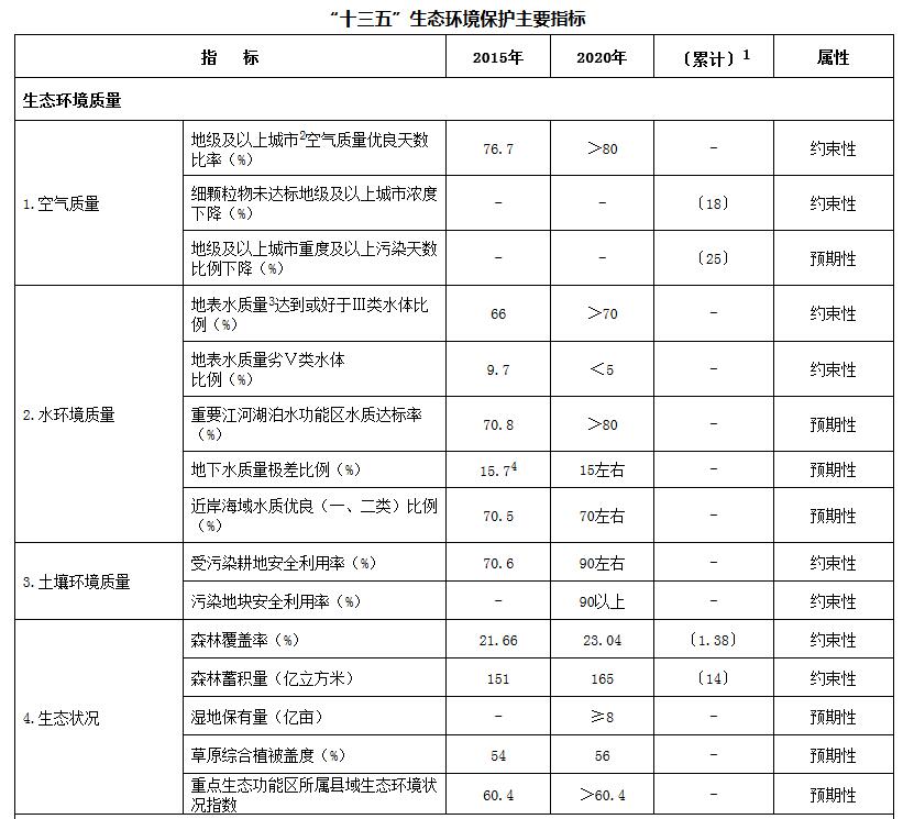 附件:“十三五”生態(tài)環(huán)境保護主要指標