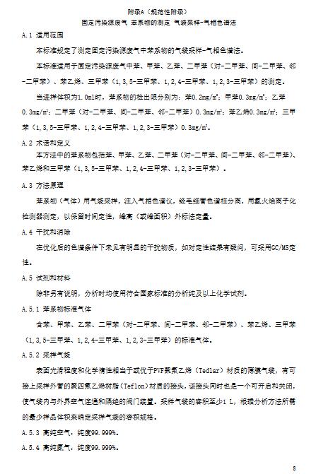 對大氣污染物排放濃度的測定采用表5所列的監(jiān)測方法或生態(tài)環(huán)境主管部門認定的等效方法,本標準實施后國家發(fā)布的污染物監(jiān)測方法標準,如適用性滿足要求,同樣適用于本標準相應(yīng)污染物的測定。