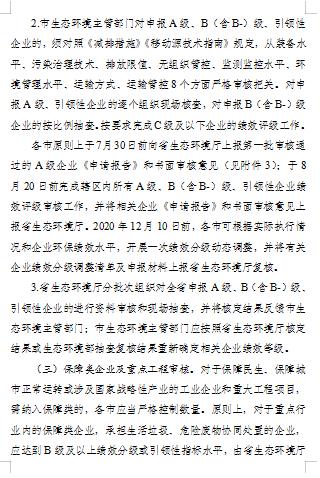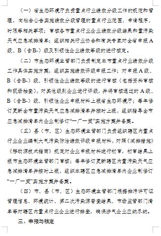 (四)省級(jí)審核。省生態(tài)環(huán)境廳分批次組織對(duì)全省申報(bào)A級(jí)、B(含B-)級(jí)、引領(lǐng)性企業(yè)的進(jìn)行資料審核和現(xiàn)場(chǎng)抽查,并將核定結(jié)果反饋市生態(tài)環(huán)境主管部門。