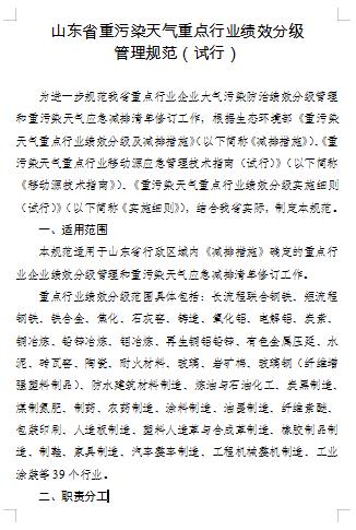 山東省重污染天氣重點(diǎn)行業(yè)績(jī)效分級(jí)管理規(guī)范(試行)