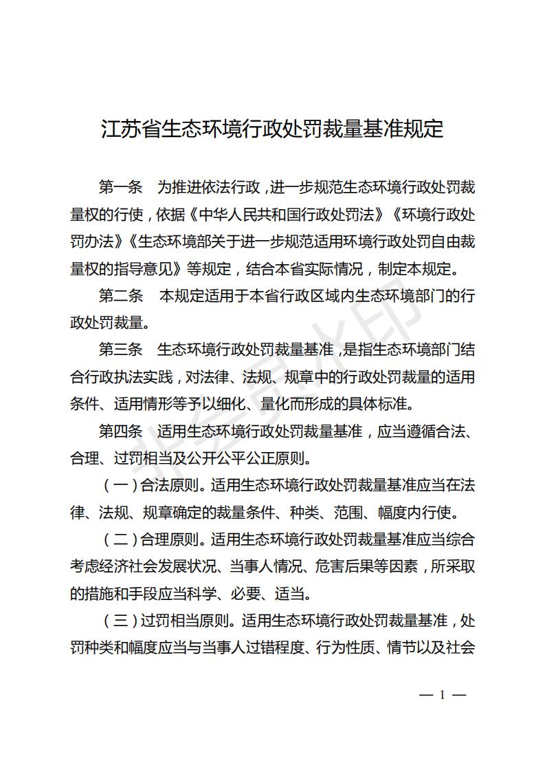 江蘇:印發(fā)《江蘇省生態(tài)環(huán)境行政處罰裁量基準(zhǔn)規(guī)定》 9月1日起施行