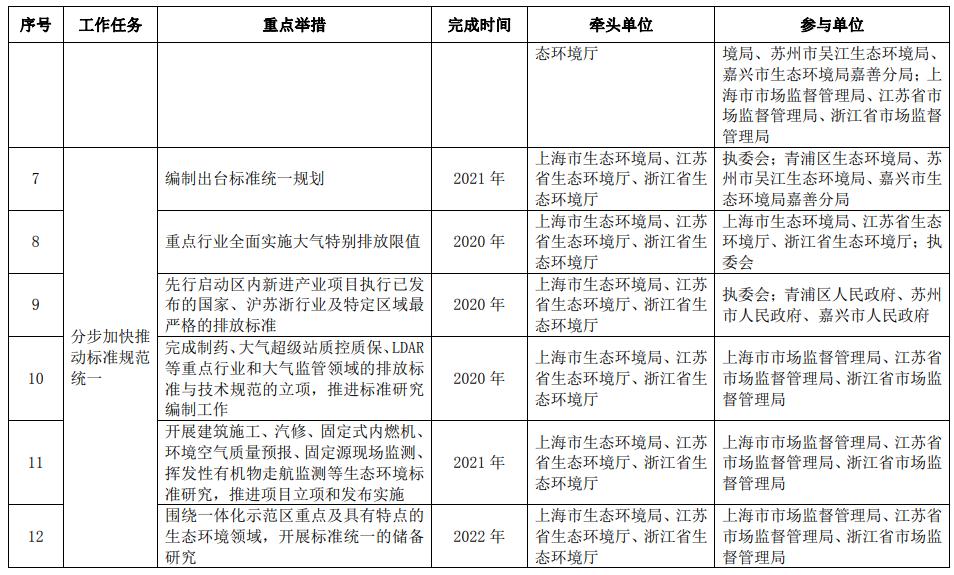 積極推進(jìn)落實(shí)滬蘇浙三地執(zhí)行國(guó)家行業(yè)標(biāo)準(zhǔn)中大氣特別排放限值的有關(guān)規(guī)定,在一體化示范區(qū)重點(diǎn)行業(yè)全面實(shí)施大氣特別排放限值。協(xié)同落實(shí)《長(zhǎng)三角生態(tài)綠色一體化發(fā)展示范區(qū)先行啟動(dòng)區(qū)產(chǎn)業(yè)項(xiàng)目準(zhǔn)入標(biāo)準(zhǔn)》。在先行啟動(dòng)區(qū)內(nèi)新進(jìn)產(chǎn)業(yè)項(xiàng)目污染物排放執(zhí)行已發(fā)布的國(guó)家、滬蘇浙行業(yè)及特定區(qū)域最嚴(yán)格的排放標(biāo)準(zhǔn)。相關(guān)要求適時(shí)擴(kuò)大到一體化示范區(qū)全域。