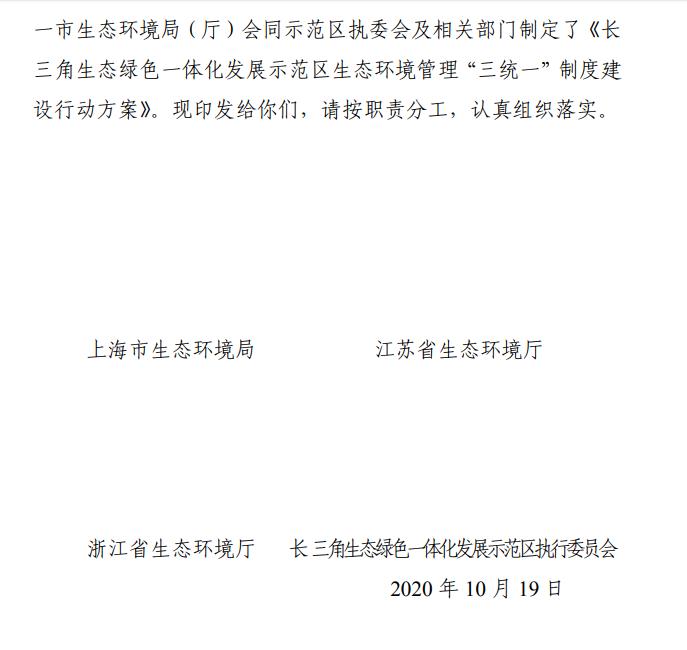 長(zhǎng)三角生態(tài)綠色一體化發(fā)展示范區(qū)生態(tài)環(huán)境管理“三統(tǒng)一”制度建設(shè)行動(dòng)方案