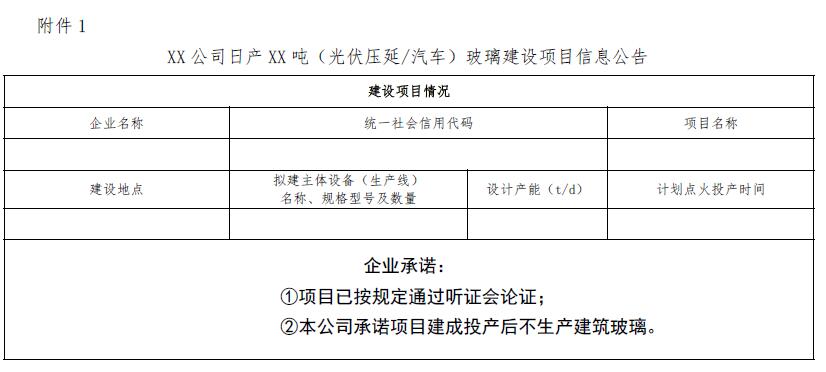 (四)光伏壓延玻璃和汽車玻璃項(xiàng)目可不制定產(chǎn)能置換方案,但新建項(xiàng)目應(yīng)委托全國(guó)性的行業(yè)組織或中介機(jī)構(gòu)召開聽證會(huì),論證項(xiàng)目建設(shè)的必要性、技術(shù)先進(jìn)性、能耗水平、環(huán)保水平等,并公告項(xiàng)目信息(附件1),項(xiàng)目建成投產(chǎn)后企業(yè)履行承諾不生產(chǎn)建筑玻璃。