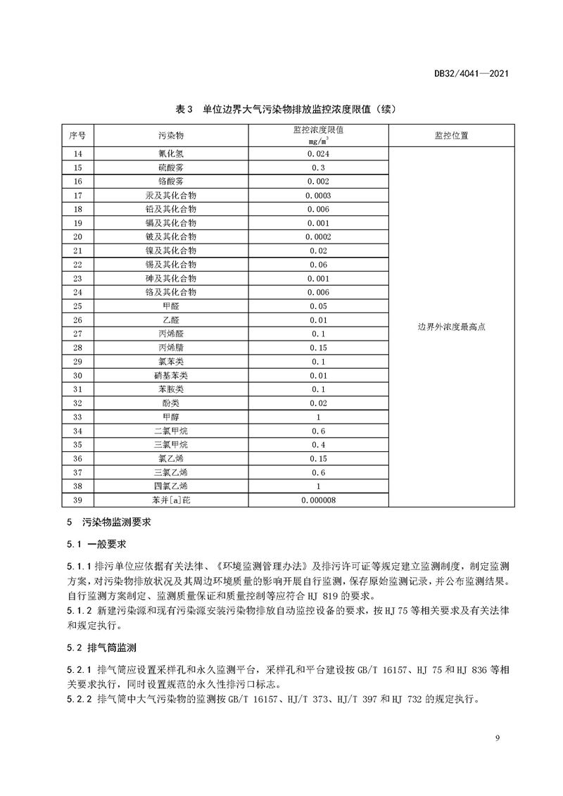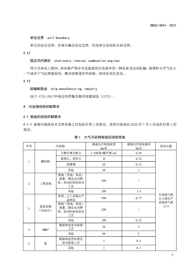 江蘇省地方標(biāo)準(zhǔn)《大氣污染物綜合排放標(biāo)準(zhǔn)》DB32/4041—2021